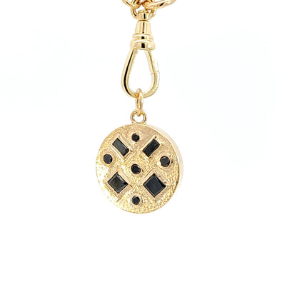 Round textured solid 14k yellow gold flush set with multiple shapes, colors & sizes of natural color treated diamonds. 2mm round x2, 2.5mm round x3, 4x2mm baguette x2 & 4x4mm princess cut x2.