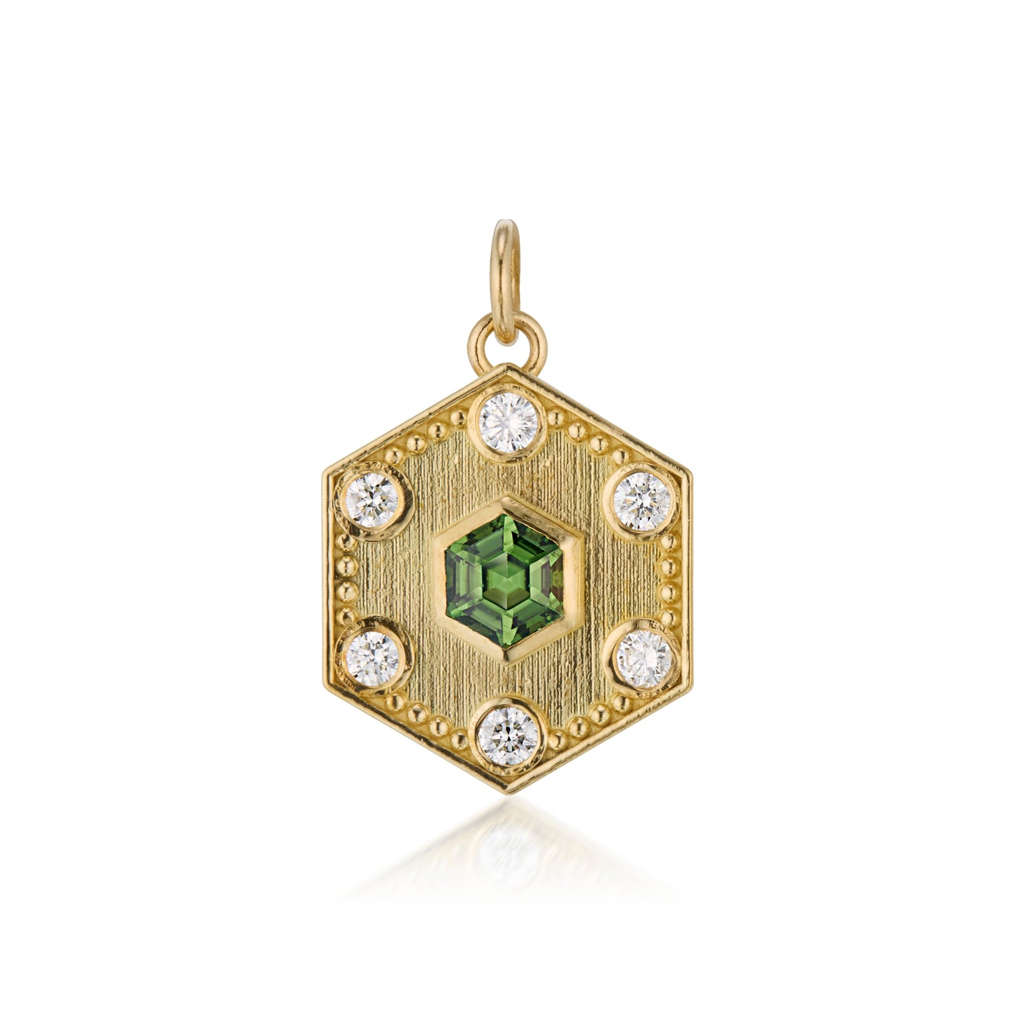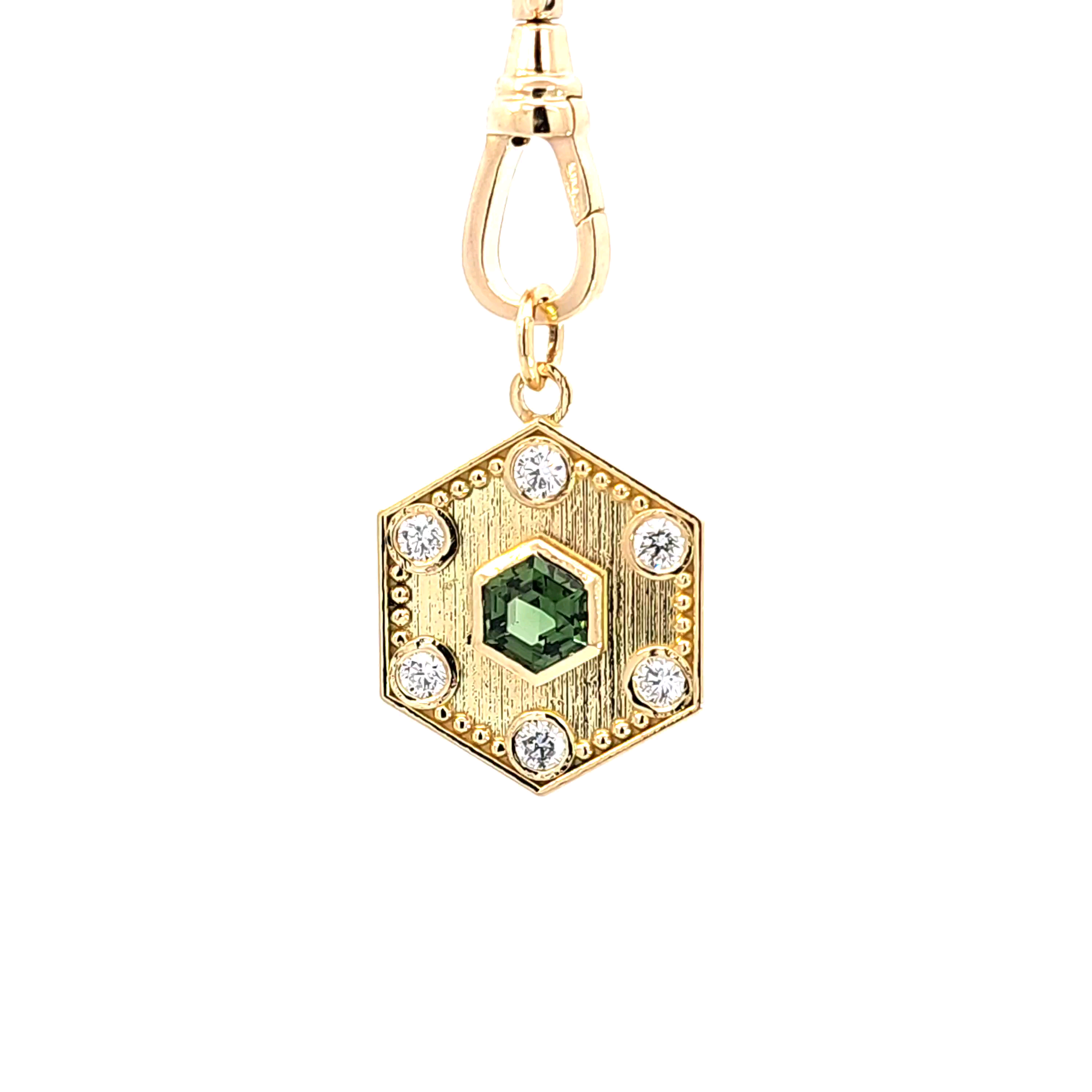Chrome Tourmaline & Diamonds Hexagon Pendant