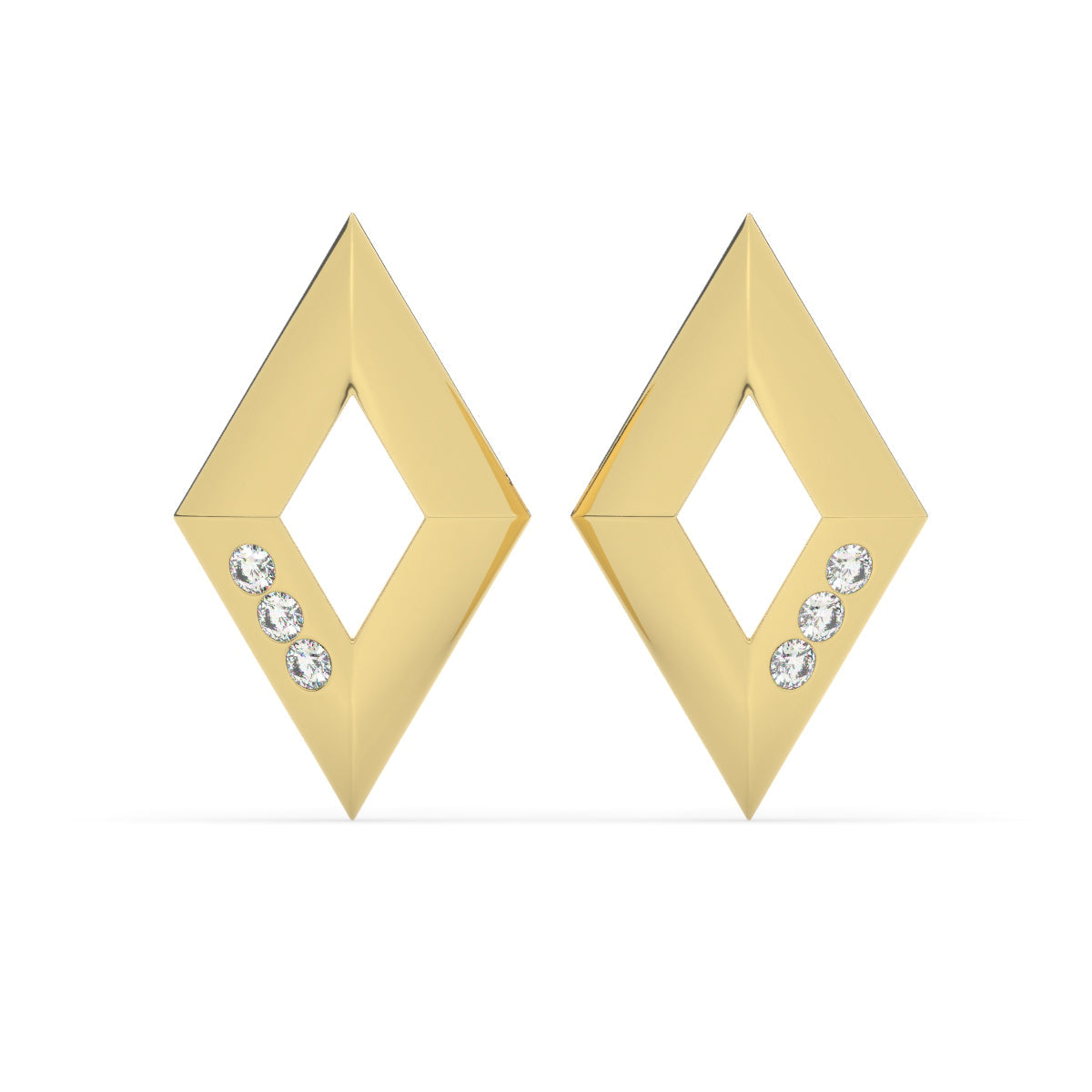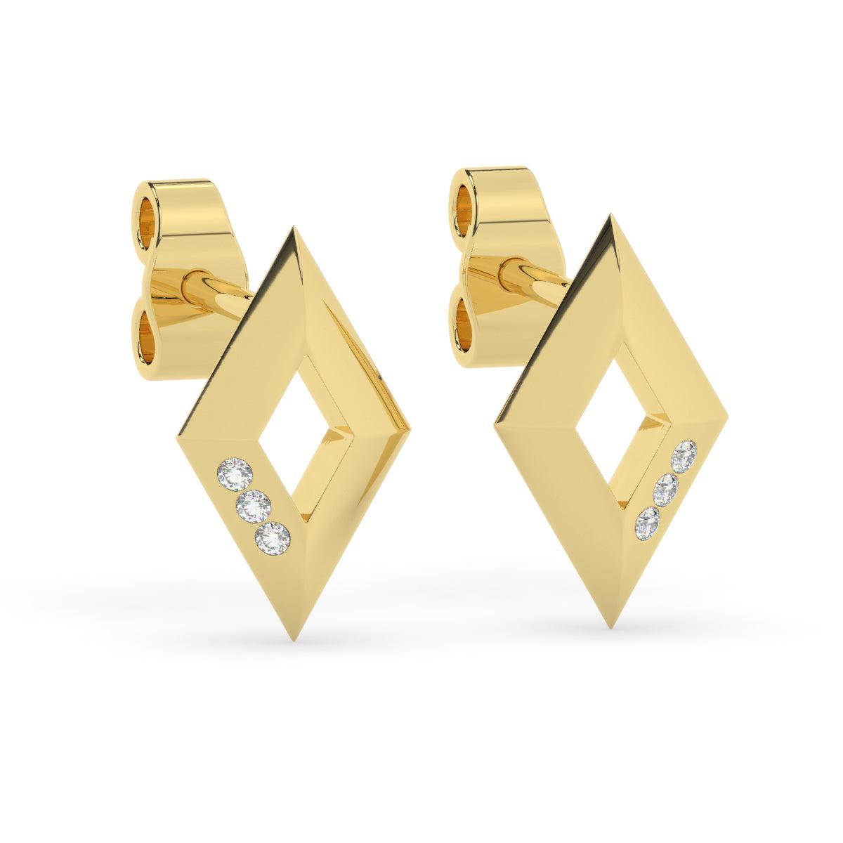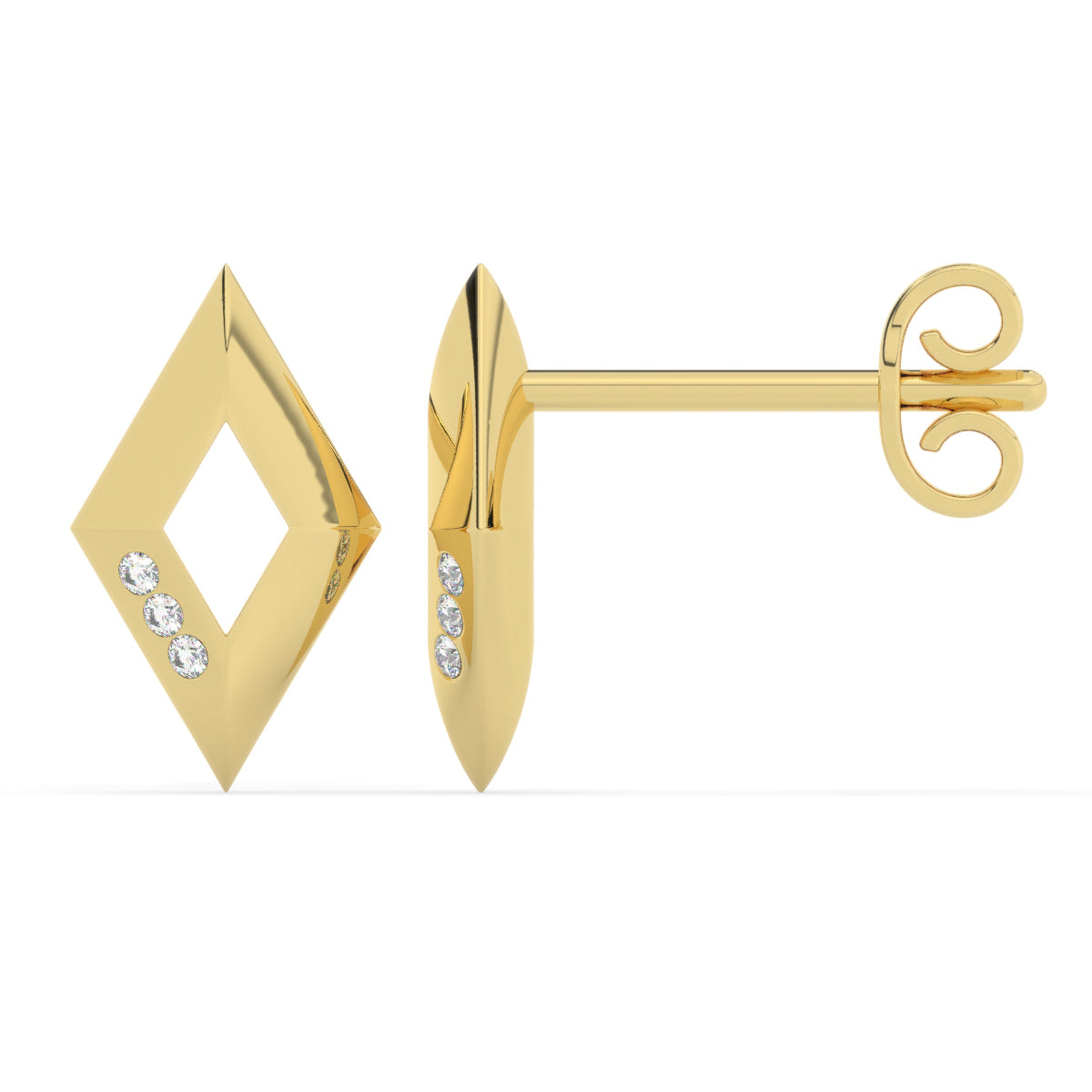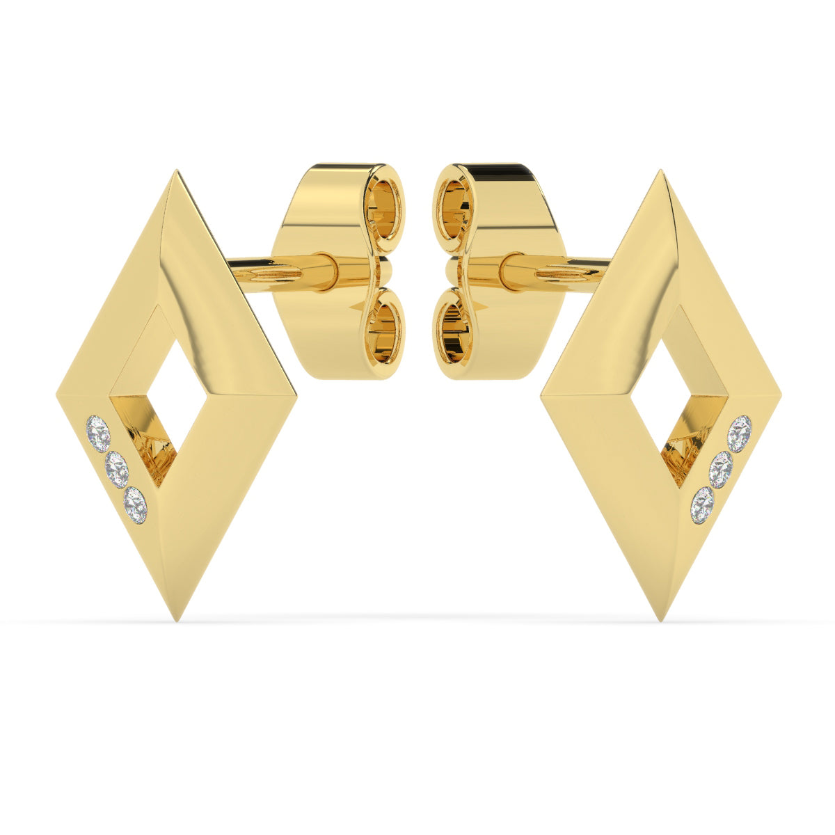 Small solid 14k gold earrings finished with posts & butterfly earring backs. Earrings are set with 3x 1mm natural white diamonds. These earrings are bold enough to wear by themselves. They're 3D & puffy but solid throughout. Not hollow. Sold as a pair.