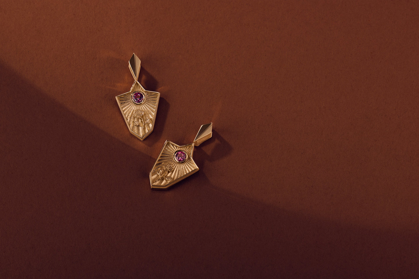 A shield for her. A talisman designed & made for us by us. A shield for protection. A rose for beauty that can sometimes be painful. A pink stone for femininity. A reminder to lean into your feminine energy always.