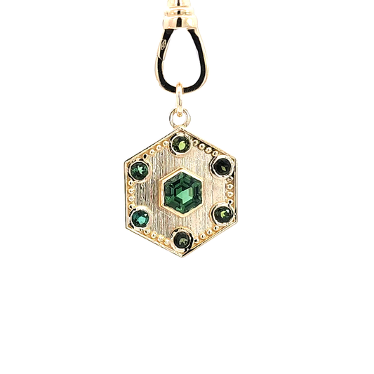 Chrome Tourmaline & Diamonds Hexagon Pendant