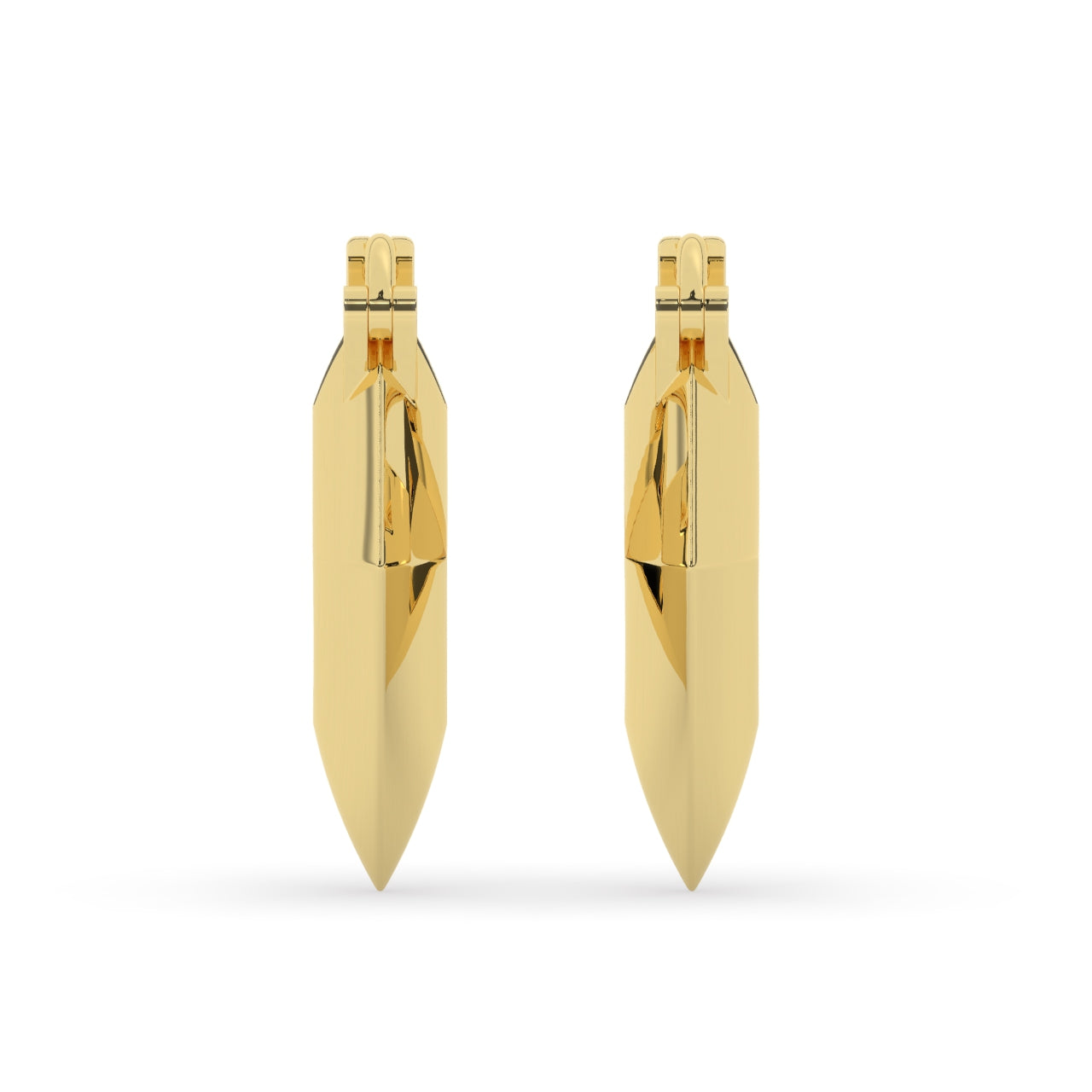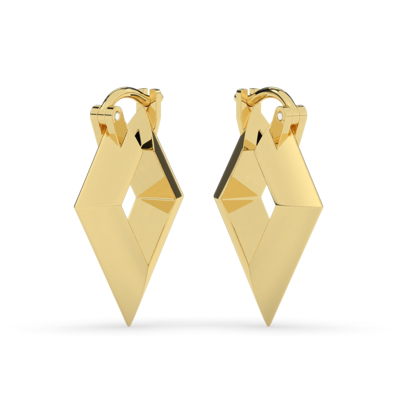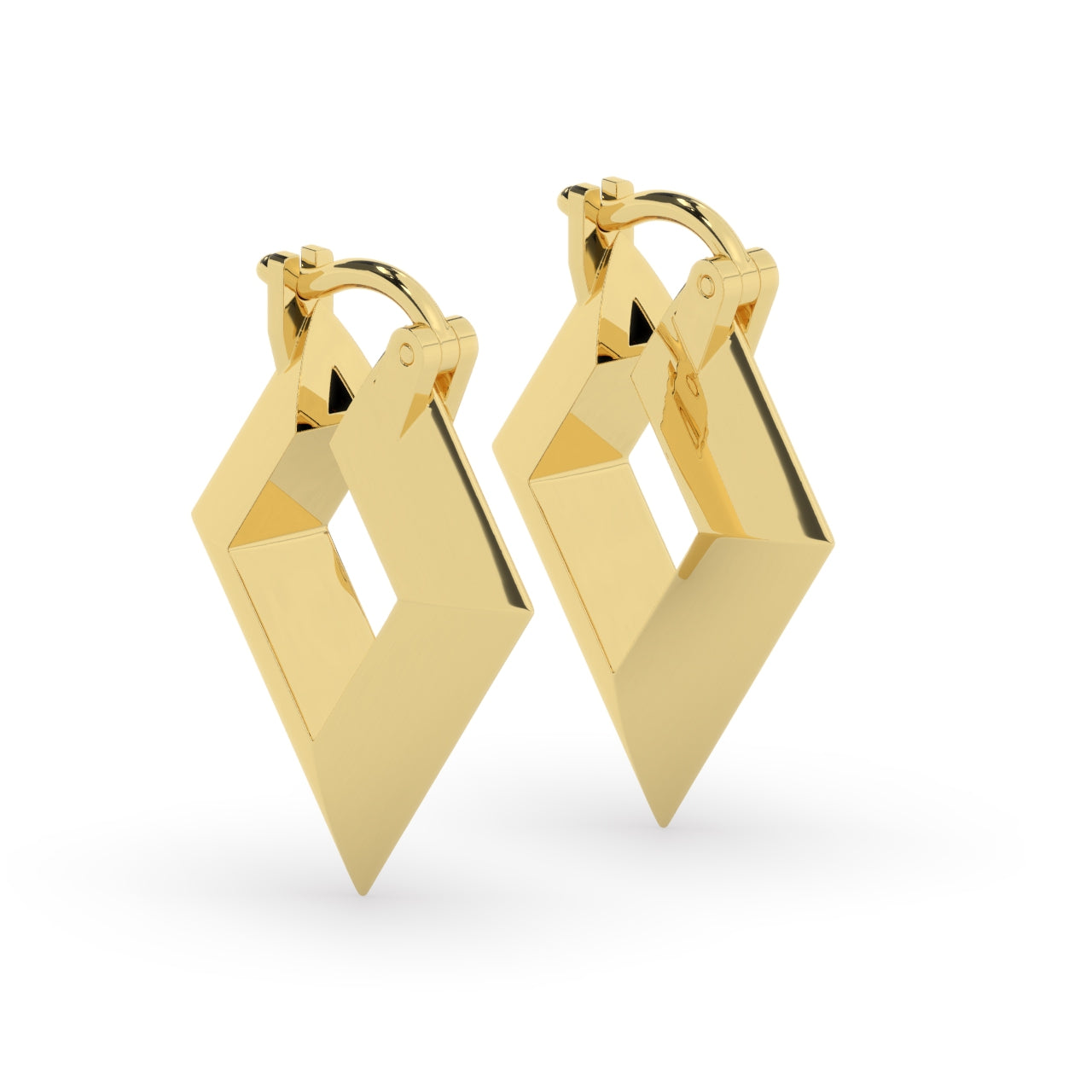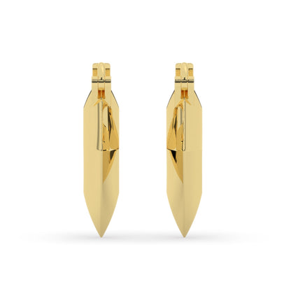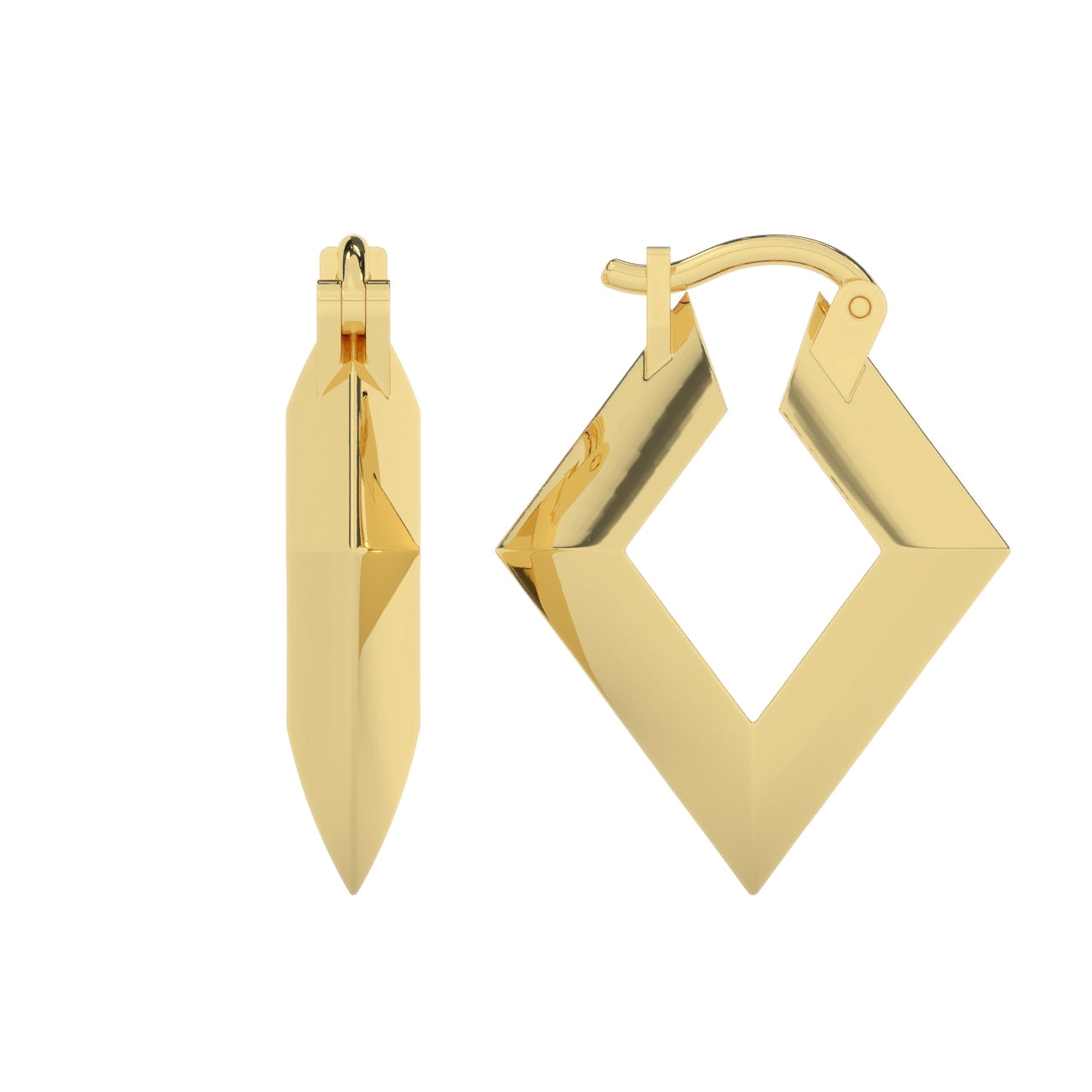 Made in the same diamond shape, these hoop earrings are 14k solid gold with a knife edge. The 15mm & 20mm sizes are solid. The 25mm is hollowed out to make them comfortable to wear. The 25mm size, though hollow, is thick & will not dent or bend. Sold as a pair.