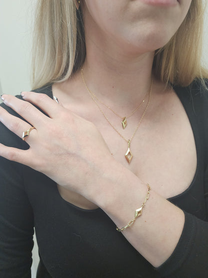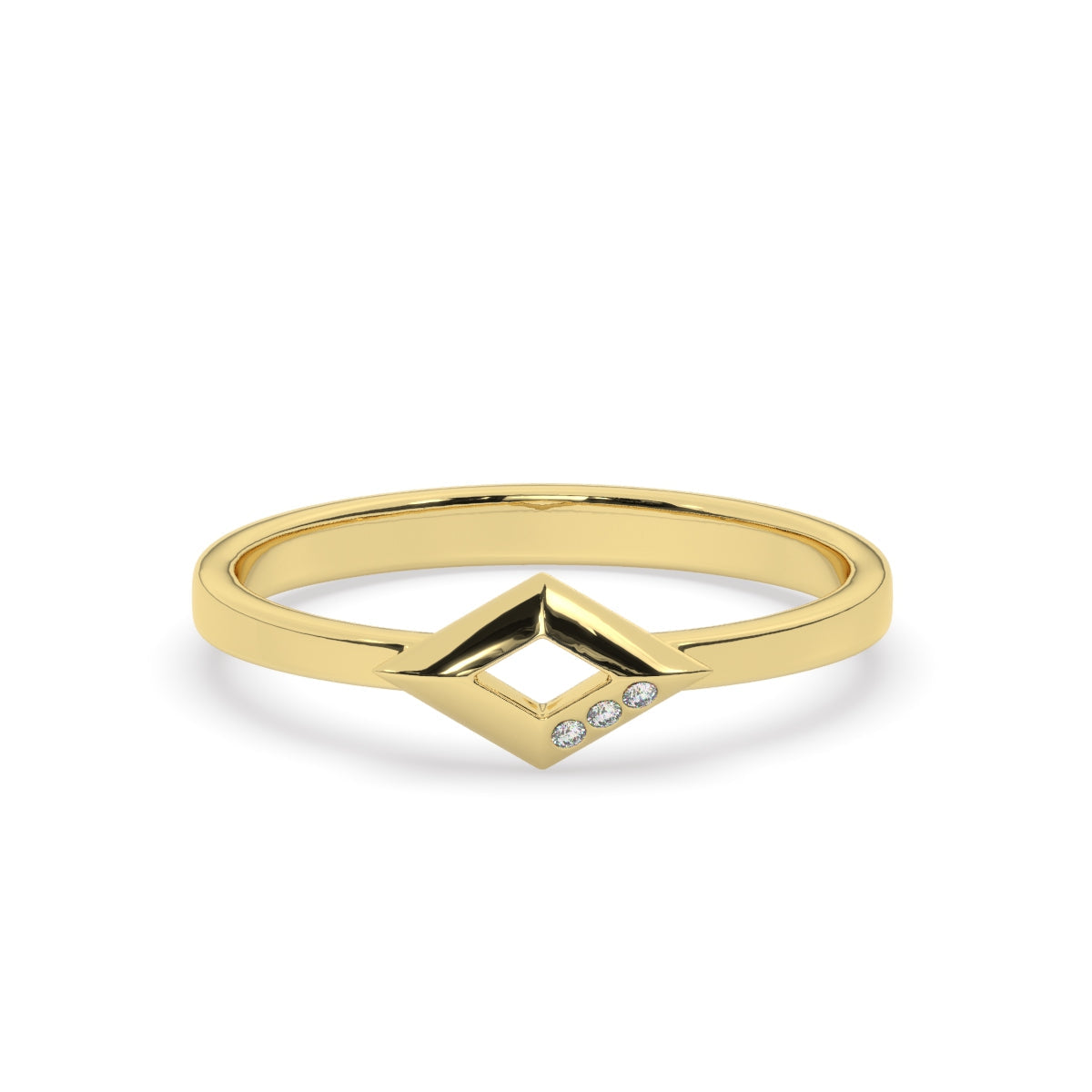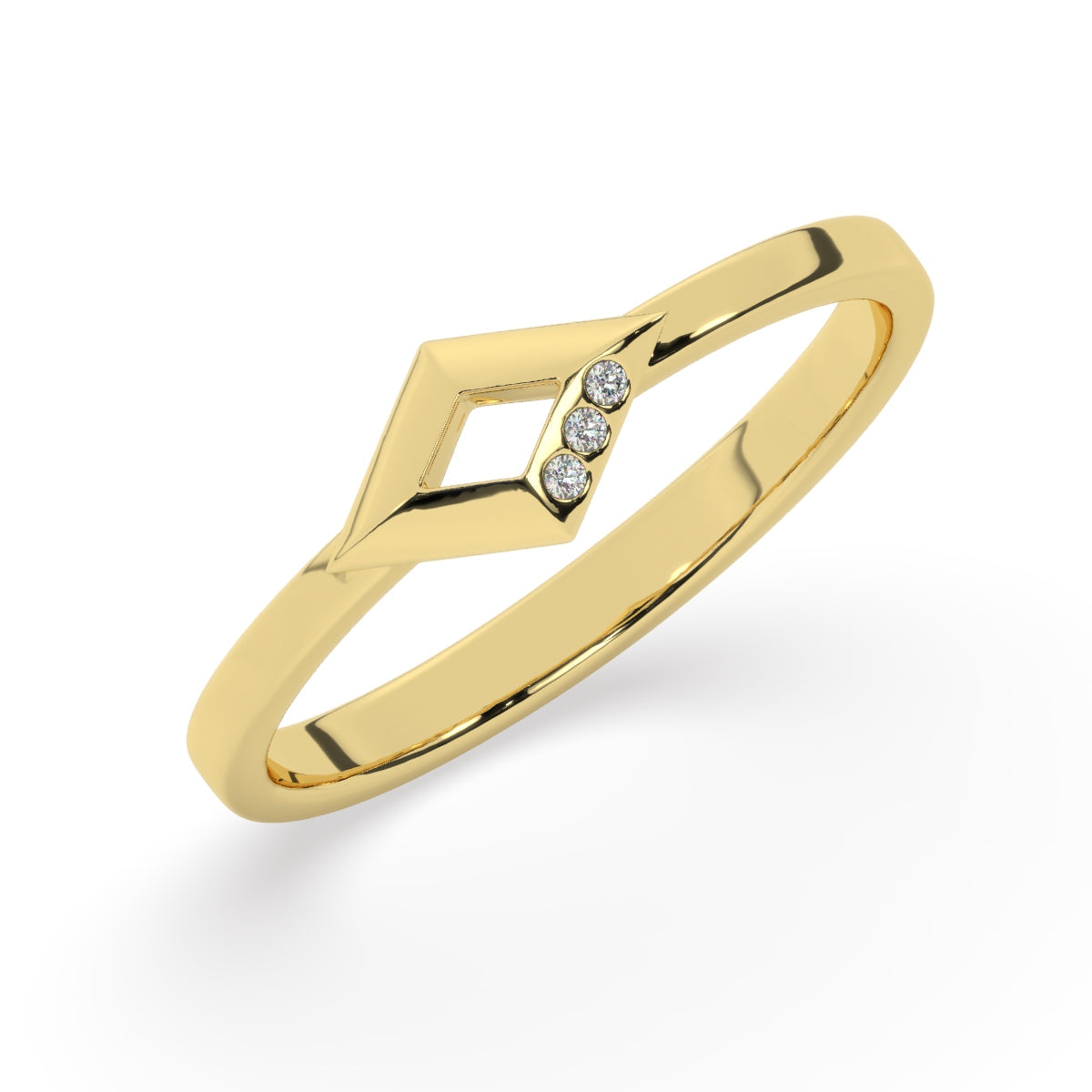 3D diamond shape topped ring set with 3x 1mm natural white diamonds on a tapered band. Ring band tapers from slim at the top to wide at the bottom making this a very comfortable ring to wear as the inside edges are also rounded out. Diamond shape measures 11mm x 6mm & ring band tapers from 2mm at the top to 3mm at the bottom.