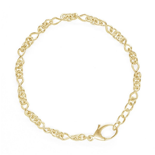 Handmade chain in a twisted 8 style link design. Each piece is meticulously formed, linked, soldered & polished by hand. Chain is made out of solid links that aren't hollow & are quite substantial in weight. Starting at 6 grams.